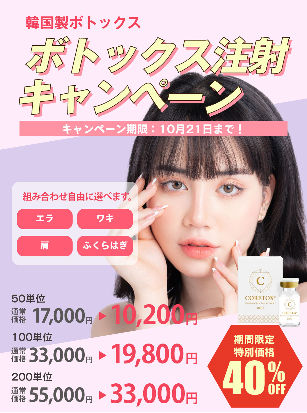 【10月21日まで】組み合わせ自由!ボトックスキャンペーン